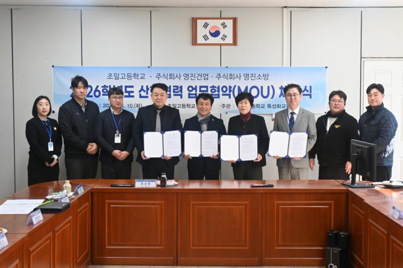 영진건업과 영진소방은 지난 2026년 3월 10일(화),조일고등학교 회의실에서 상호 전략적 파트너십 구축을 위한 2026학년도 산학협력 업무협약(MOU)을 체결하였습니다.